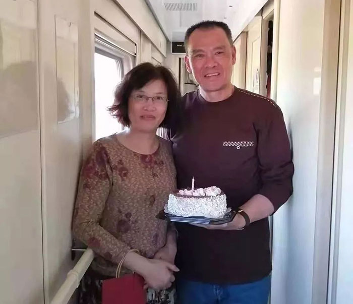 列车上恰逢我们的团员戴老师的生日,于是就有了全体团员一起祝戴老师生日快乐的大合唱,还有分享蛋糕和快乐美好画面。